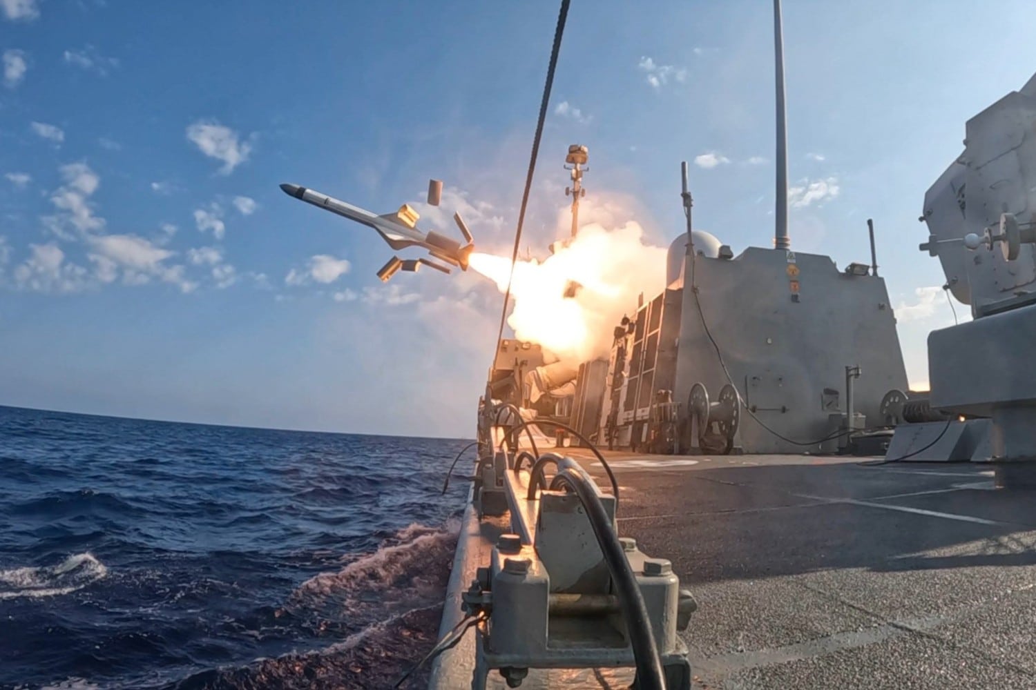 Τη Δευτέρα (23/6) διεξήχθησαν εκπαιδευτικές βολές κατευθυνομένων βλημάτων του Πολεμικού Ναυτικού, στην ευρύτερη περιοχή του νότιου Ιονίου Πελάγους, παρουσία του υπουργού Εθνικής Άμυνας Νίκου Δένδια, του αρχηγού ΓΕΕΘΑ στρατηγού Δημήτριου Χούπη και του αρχηγού ΓΕΝ αντιναυάρχου Δημητρίου-Ελευθερίου Κατάρα ΠΝ.