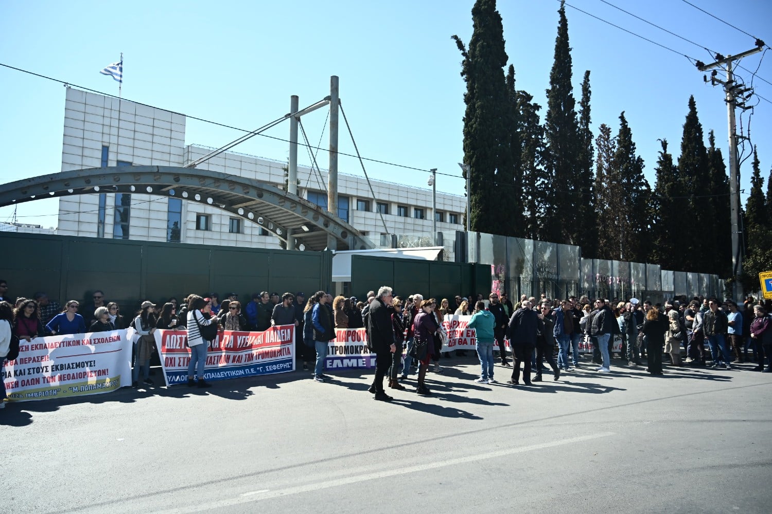 Εκπαιδευτικοί συγκεντρώθηκαν στο υπουργείο Παιδείας: «Έθεσαν σε αργία συνάδελφο λόγω της συνδικαλιστικής του δράσης» (βίντεο)