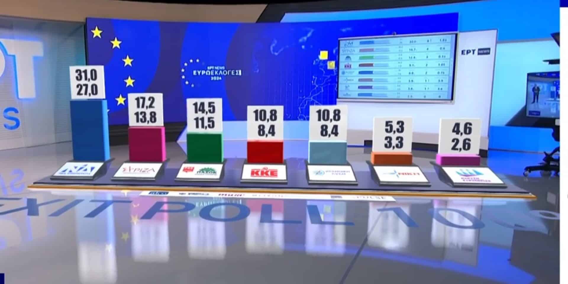 Εκπλήξεις στο τελικό Exit Poll για τις Ευρωεκλογές: Ακόμα πιο αποδυναμωμένοι ΝΔ (27-31) και ΣΥΡΙΖΑ (13,8-17,2) – Αυξημένα ποσοστά (11,5-14,5) για το ΠΑΣΟΚ!