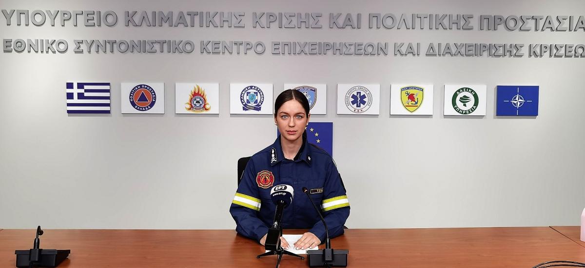 Η Εκπρόσωπος Τύπου του Πυροσβεστικού Σώματος, Ανθυποπυραγός Τζίμα Ραφαέλα, πραγματοποίησε στις 18:00 το απόγευμα έκτακτη ενημέρωση για τις δασικές πυρκαγιές, από το Εθνικό Συντονιστικό Κέντρο Επιχειρήσεων και Διαχείρισης Κρίσεων στο Μαρούσι.
