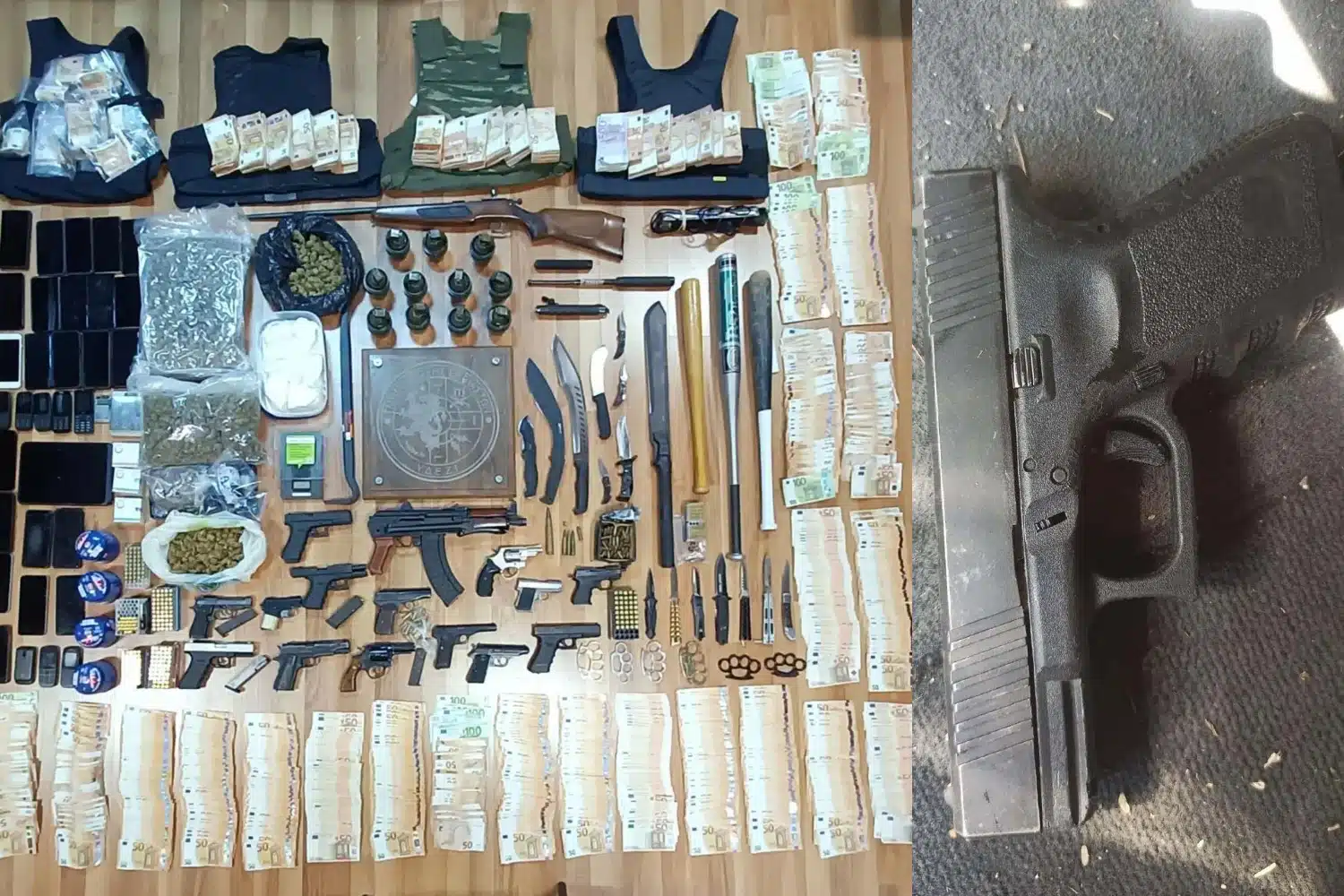 Σε σωματικές έρευνες καθώς και σε έρευνες που πραγματοποιήθηκαν σε οικίες, και οχήματα, μεταξύ άλλων, βρέθηκαν και κατασχέθηκαν: