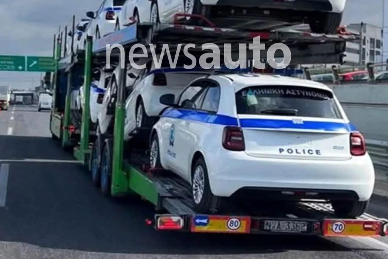 Στη φωτογραφία που κυκλοφόρησε πρόσφατα, φαίνεται ένα φορτηγό να μεταφέρει αρκετά Fiat 500e με τα διακριτικά της ΕΛ.ΑΣ., γεγονός που επιβεβαιώνει τη σταδιακή ένταξή τους στην υπηρεσία.