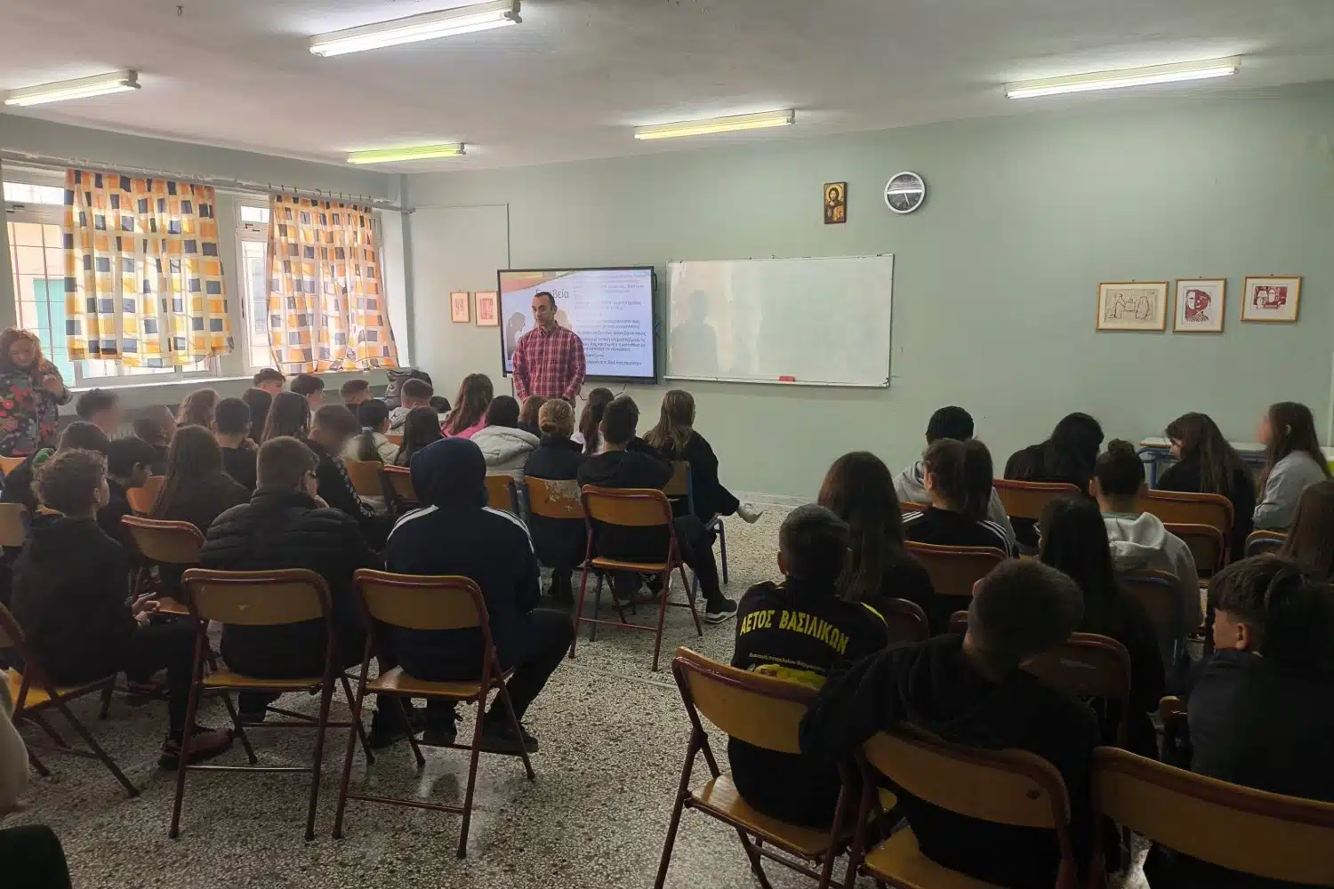 Κατά τη διάρκεια τεσσάρων διδακτικών ωρών, ο κ. Αγγελίδης είχε την ευκαιρία να συνομιλήσει με τους μαθητές και τις μαθήτριες της Α’ και Β’ τάξης, αναπτύσσοντας ζητήματα που αφορούν τον σεβασμό, τα προσωπικά όρια και την ενσυναίσθηση, αξίες θεμελιώδεις για την πρόληψη φαινομένων βίας και παραβατικής συμπεριφοράς, αλλά και για τη διαμόρφωση υπεύθυνων και συνειδητοποιημένων πολιτών.