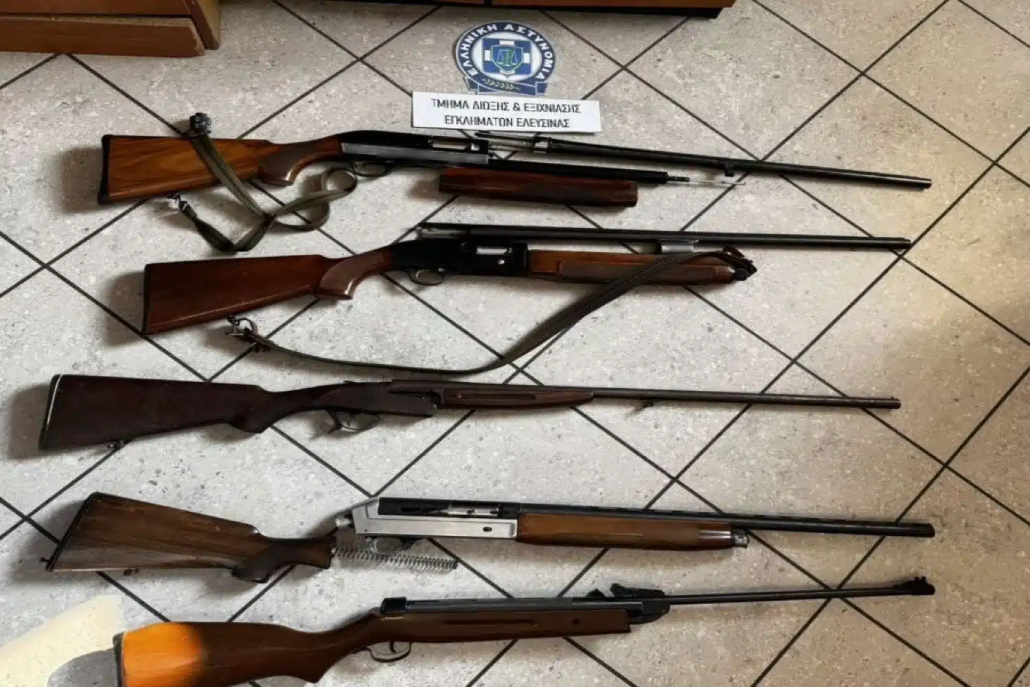Κατασχέθηκαν, μεταξύ άλλων, πέντε καραμπίνες, αεροβόλο πιστόλι, σιδερογροθιά καθώς και στιλέτο.