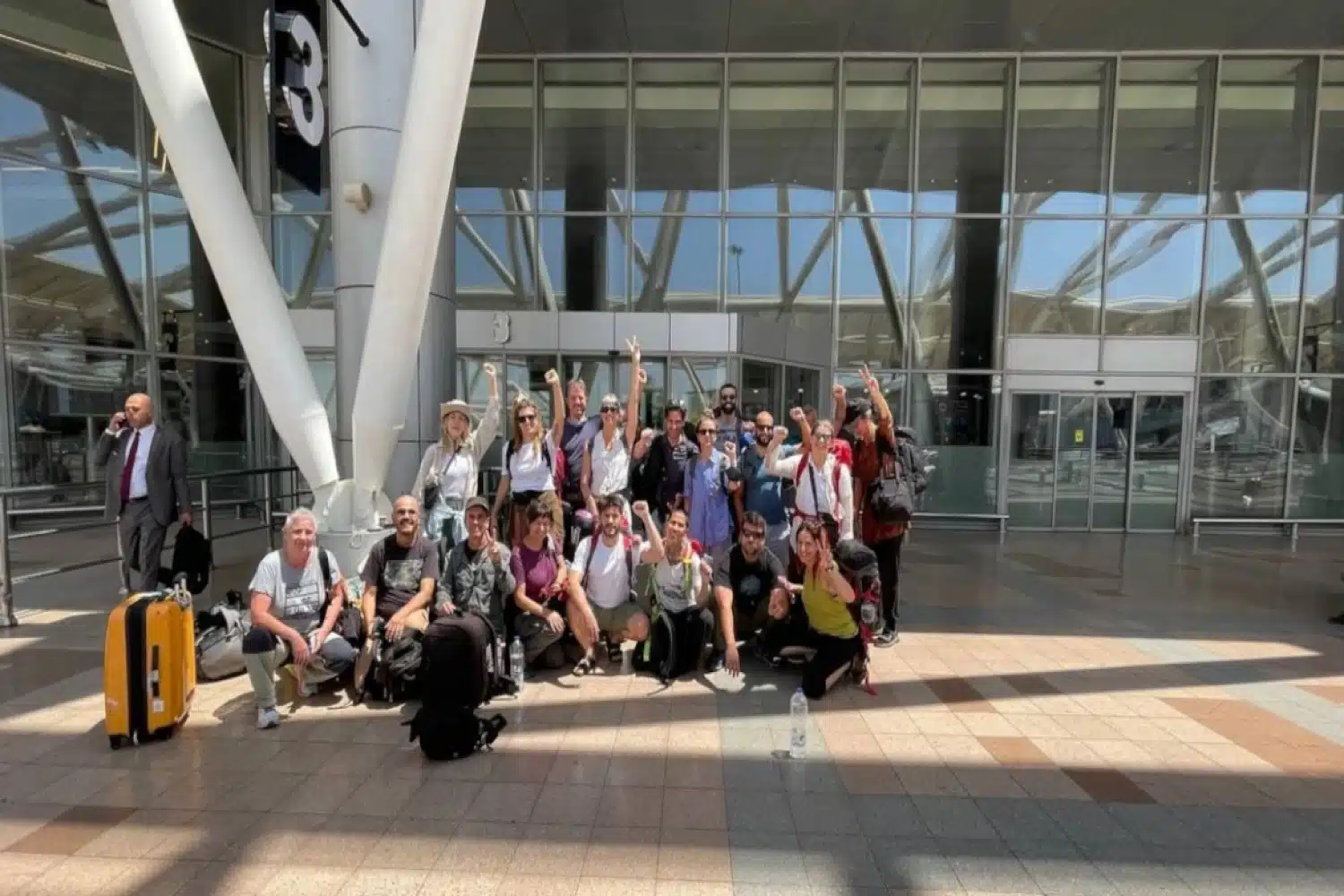 Οι 42 Έλληνες πολίτες που συμμετέχουν στην «Πορεία προς τη Γάζα», οι οποίοι αφίχθησαν σήμερα το πρωί στην Αίγυπτο και παρέμεναν μέχρι προ ολίγου, στο αεροδρόμιο του Καΐρου, στο πλαίσιο του ελέγχου των αιγυπτιακών Αρχών για την είσοδο αλλοδαπών στη χώρα, είναι πλέον ελεύθεροι να εισέλθουν στη χώρα της Αιγύπτου, σύμφωνα με διπλωματικές πηγές της χώρας μας.