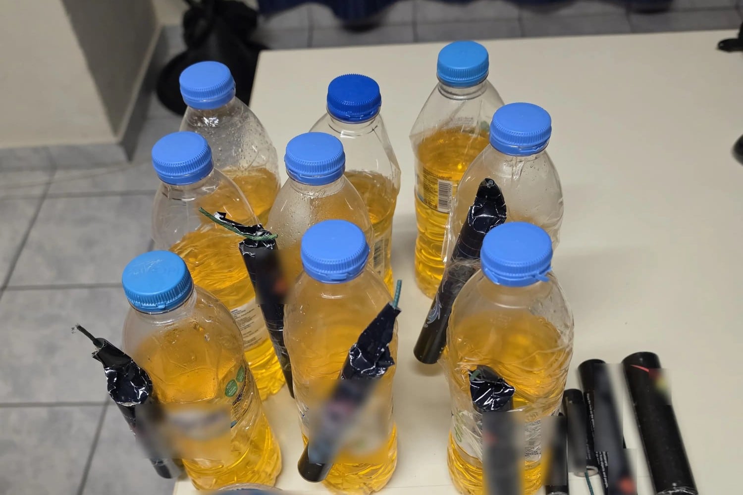 Κατασχέθηκαν συνολικά 153 μολότοφ, 38 ναυτικές φωτοβολίδες, 26 κροτίδες και 5 εύφλεκτα δοχεία.