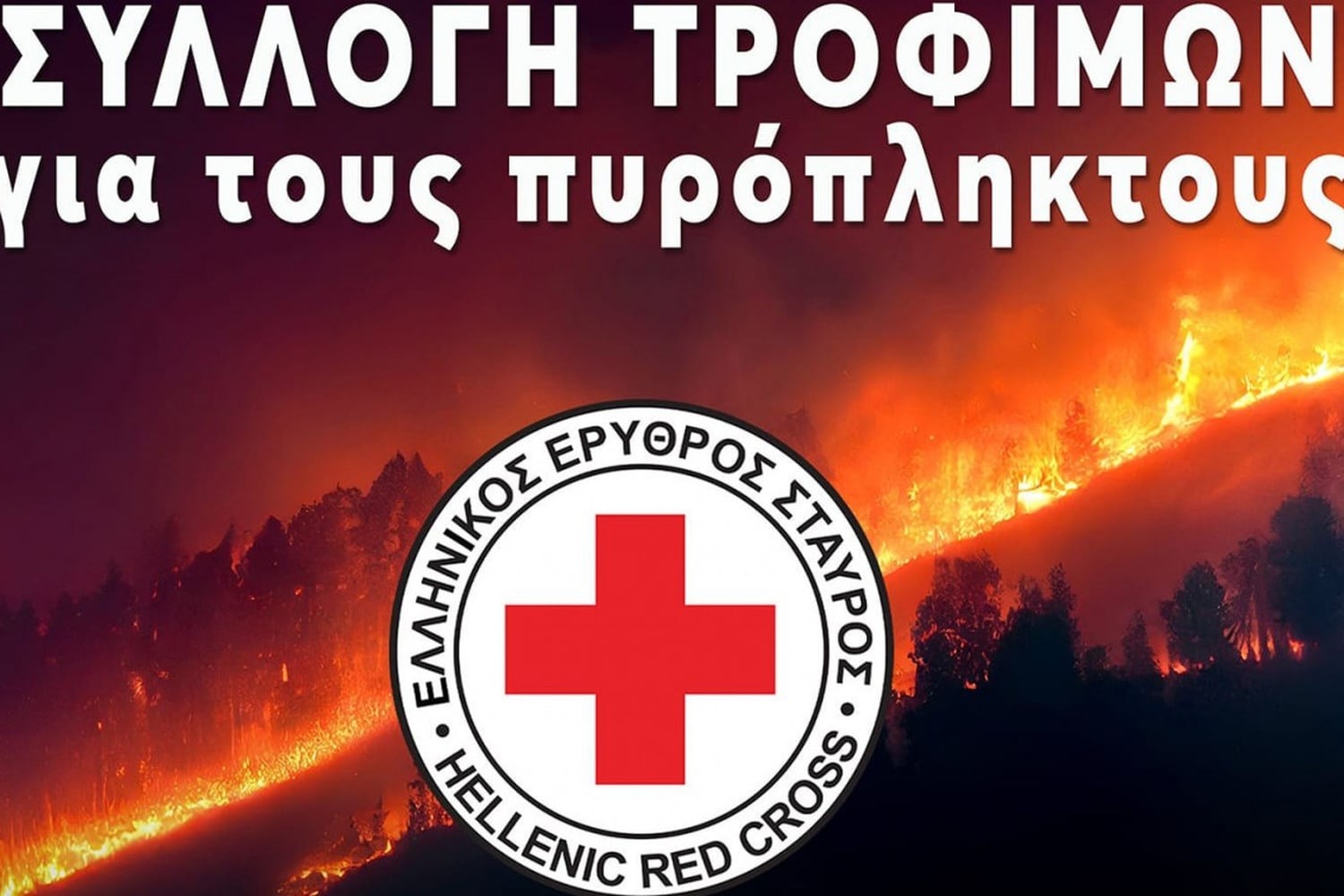 Ο Ελληνικός Ερυθρός Σταυρός απευθύνει κάλεσμα στο κόσμο για τη συγκέντρωση τροφίμων μακράς διάρκειας (γάλα εβαπορέ, σκόνη γάλακτος για παιδιά, κονσέρβες παντός τύπου, δημητριακά, παξιμάδια, αλεύρι, ζυμαρικά κ.α.) για τις πυρόπληκτες οικογένειες.