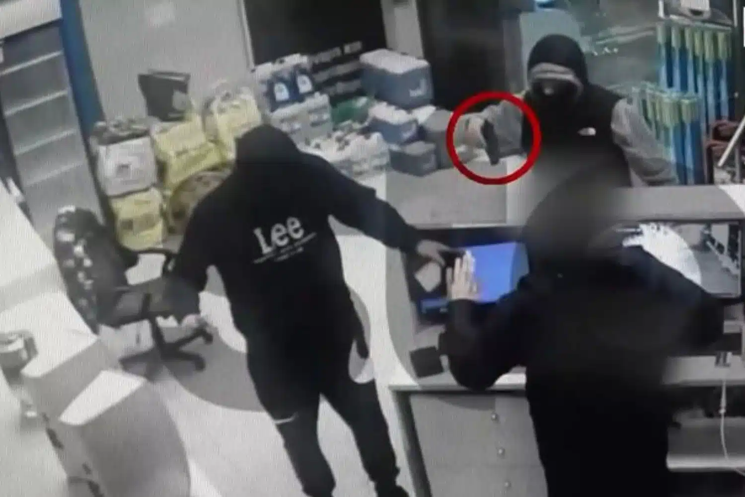 Οι υπάλληλοι αντιδρούν αιφνιδιασμένοι στη θέα του όπλου, καθώς ο δράστης κινείται γρήγορα και αποφασιστικά μέσα στον χώρο.