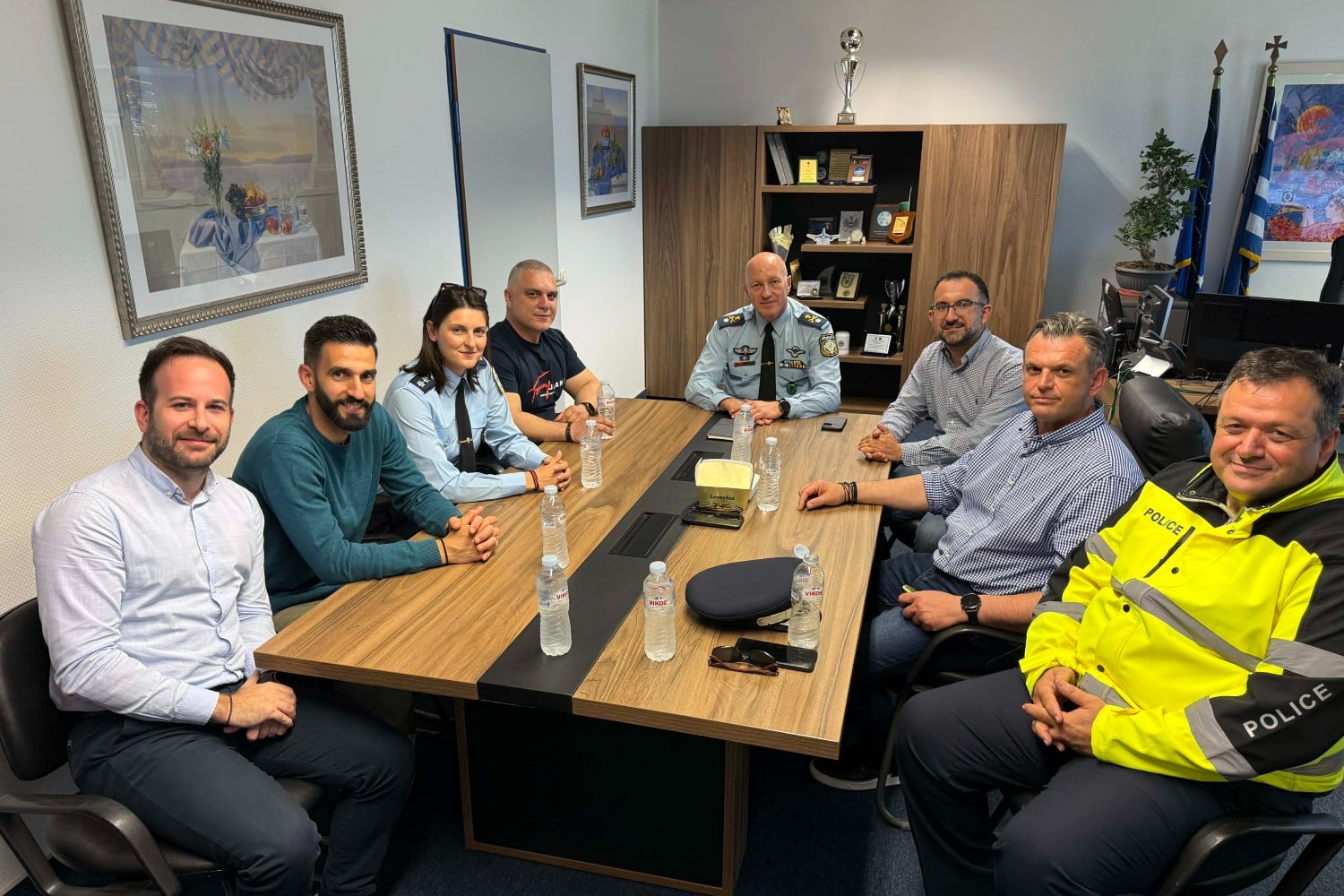 Την Τρίτη 22/04/2026, το Προεδρείο της Ένωσής μας και συγκεκριμένα ο Πρόεδρος κ. Ηλίας ΒΡΕΝΤΑΣ, ο Α΄ Αντιπρόεδρος κ. Χρήστος ΣΥΝΔΡΕΒΕΛΗΣ και ο Γενικός Γραμματέας κ. Ευάγγελος ΜΠΟΥΖΑΣ, καθώς και το μέλος του Διοικητικού Συμβουλίου και Υπεύθυνη Δημοσίων Σχέσεων κα. Βασιλική ΜΠΟΥΓΙΟΥΡΑ, μαζί με τους Αντιπροσώπους μας στην Πανελλήνια Ομοσπονδία Αστυνομικών Υπαλλήλων (Π.Ο.ΑΣ.Υ.) κ. Γεώργιο ΠΛΑΦΟΥΝΤΖΗ, κ. Δημήτριο ΚΑΡΥΚΗ και κ. Ιωάννη ΝΙΚΑΚΗ, πραγματοποίησαν συνάντηση με τον Διευθυντή της Διεύθυνσης Αστυνόμευσης Αερολιμένα Αθηνών, Ταξίαρχο κ. Δημήτρη ΜΗΤΡΑΙΝΑ.