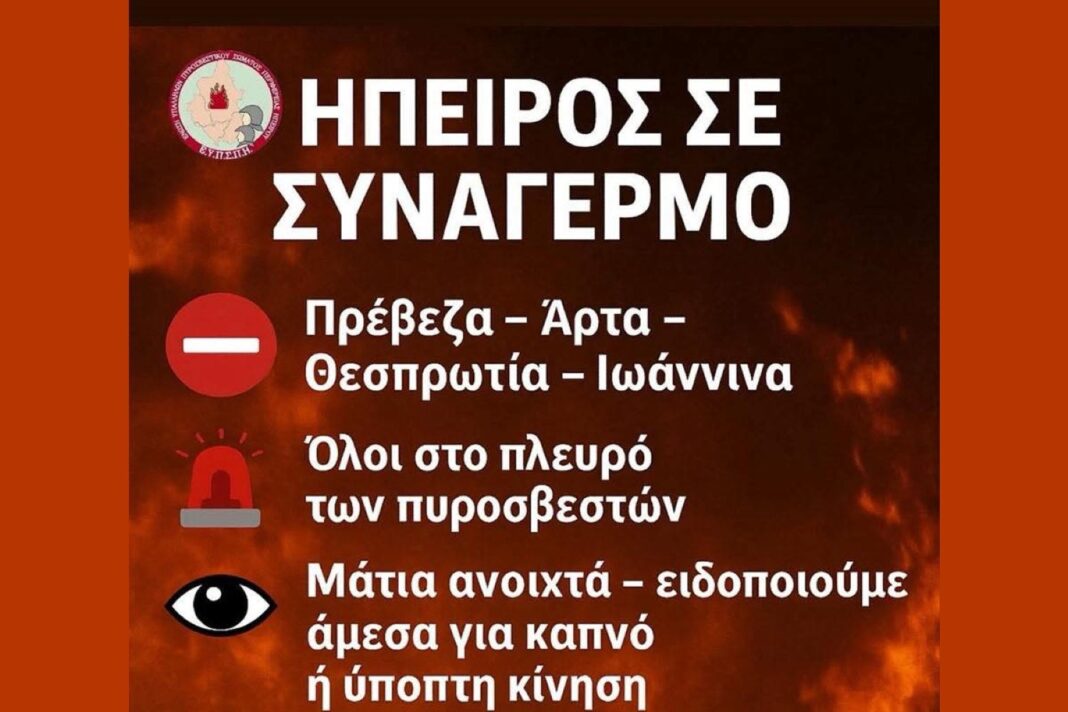 Με ανάρτησή της στο Facebook η Ένωση Υπαλλήλων Πυροσβεστικού Σώματος Περιφέρειας Ηπείρου καλεί όλους να είναι σε συναγερμό και στο πλευρό των πυροσβεστών.