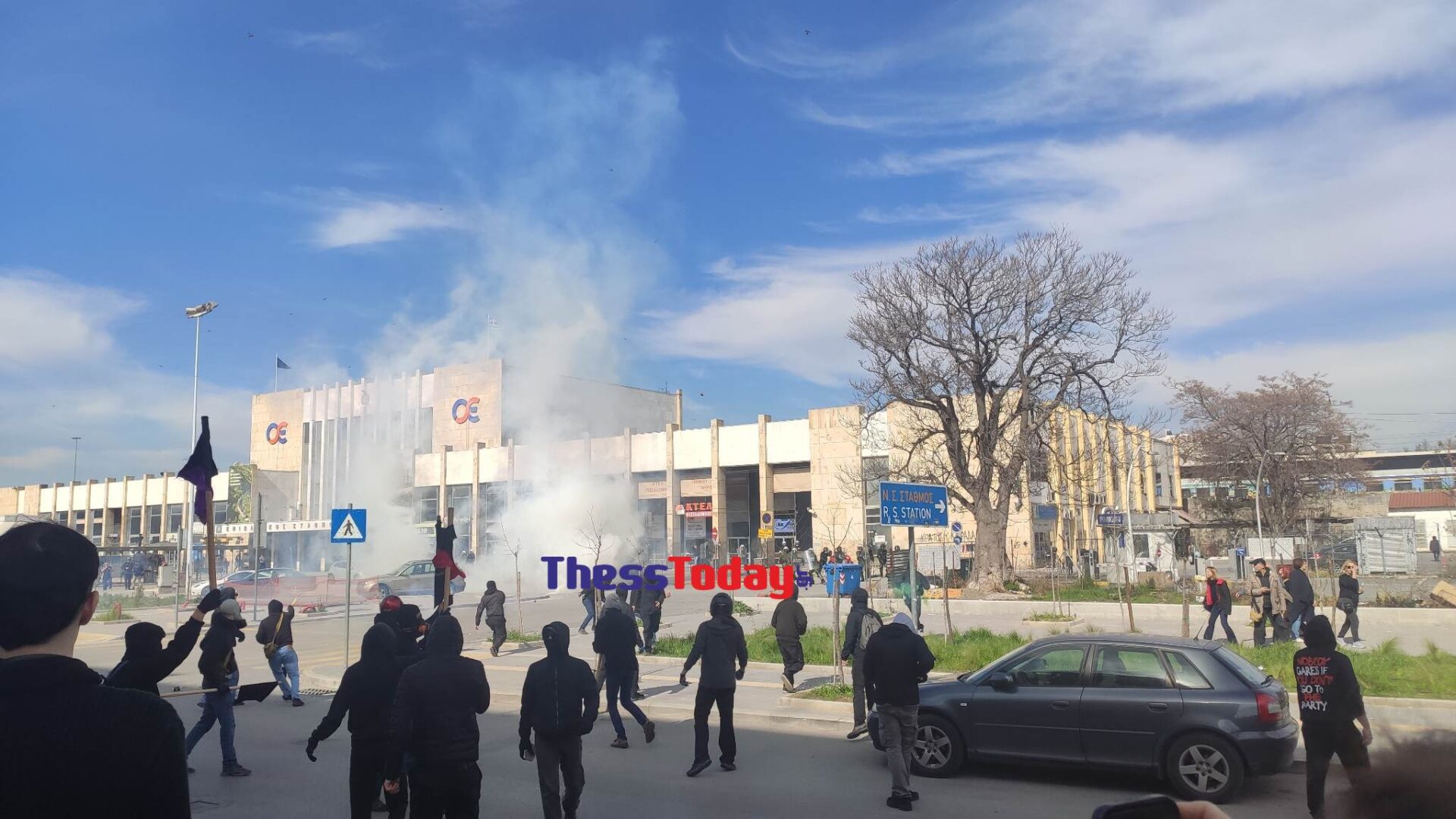 Την ώρα που άτομα που συμμετέχουν στην πορεία έφτασαν στον ΟΣΕ, σημειώθηκαν επεισόδια με τους κουκουλοφόρους να πετάνε μολότοφ, και τις αστυνομικές δυνάμεις να κάνουν ρίψεις χημικών.
