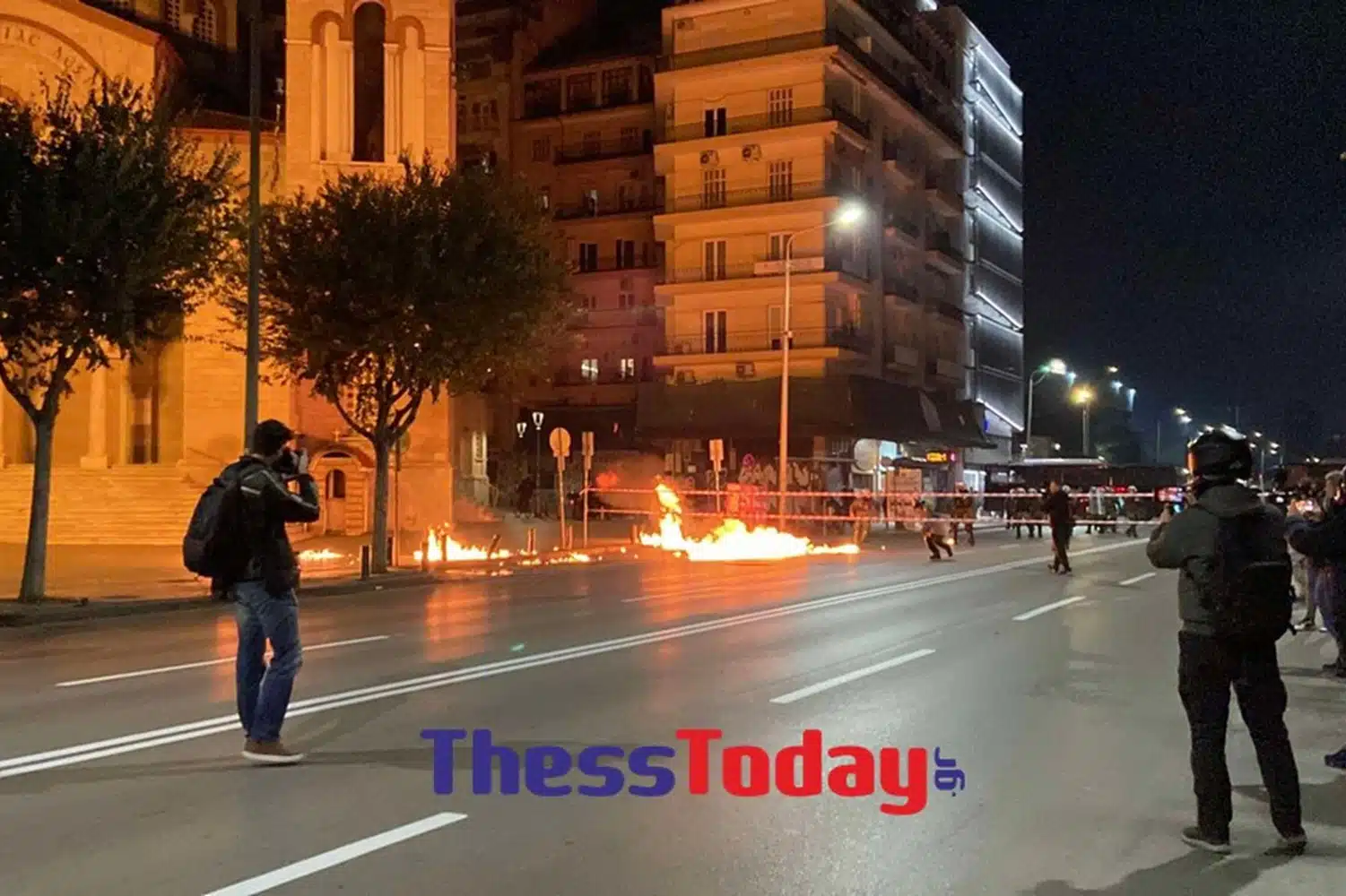 Η Εγνατία αυτή την ώρα να έχει μετατραπεί σε πεδίο μάχης. Οι αστυνομικοί απαντούν με κρότου λάμψης και εκτεταμένη χρήση χημικών.