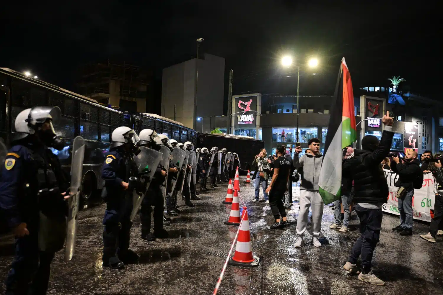 Νωρίτερα το απόγευμα, στους δρόμους της Θεσσαλονίκης και στο κέντρο της Αθήνας βγήκαν διαδηλωτές, για την αναχαίτιση του Global Sumud Flotilla που έπλεε προς τη Γάζα.