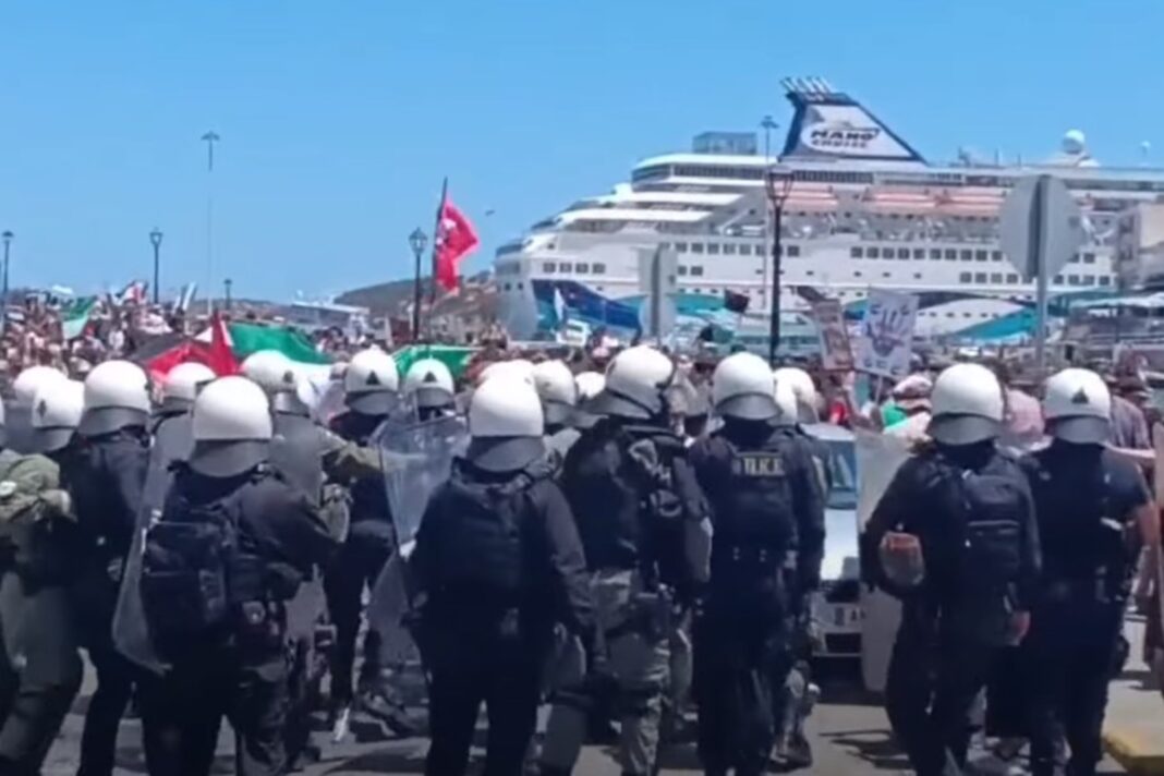 Επεισόδια ξέσπασαν το μεσημέρι της Τρίτης (29/7) στο λιμάνι του Αγίου Νικολάου στο Λασίθι κατά την άφιξη του κρουαζιερόπλοιου «Crown Iris» στο οποίο επιβαίνουν 1.600 ισραηλινοί τουρίστες.