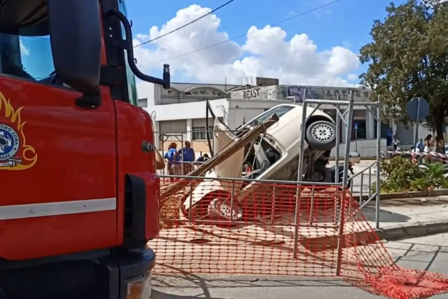 Συνεχίζοντας την τρελή πορεία του, «κάρφωσε» το ΙΧ σε κολώνα της ΔΕΗ κοντά στη ΔΟΥ Κηφισιάς, όπου «μπούκαρε» σε αυλή σπιτιού.