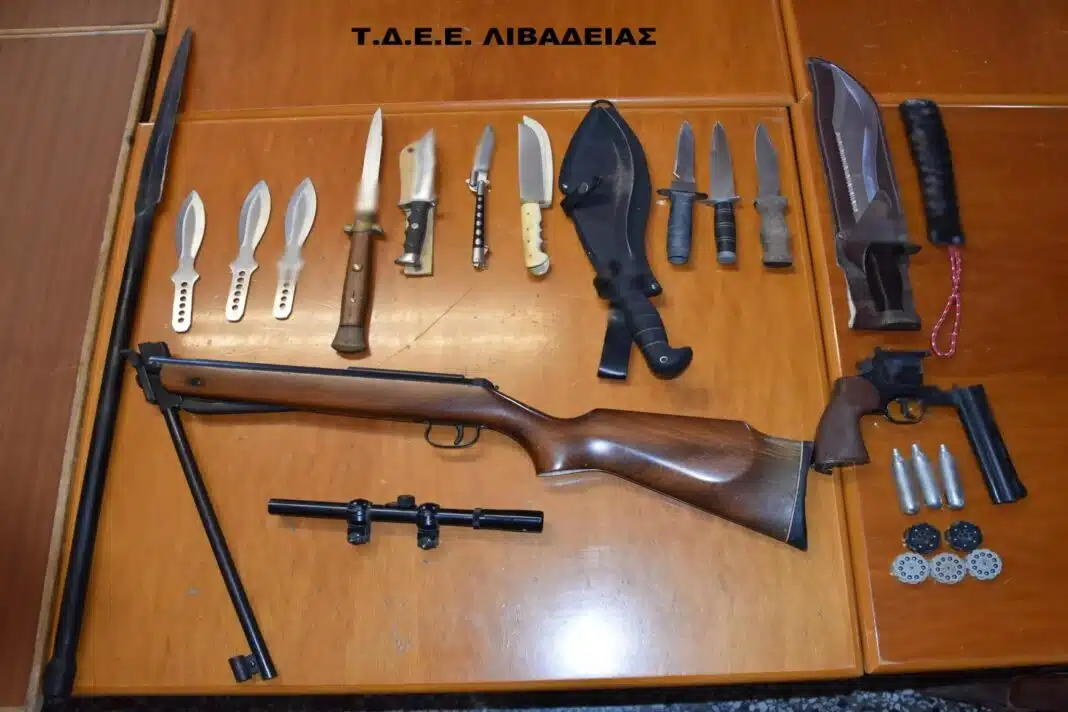 - -8- μαχαίρια, -2- στιλέτα, -2- μπαλτάδες και ένα δόρυ.
