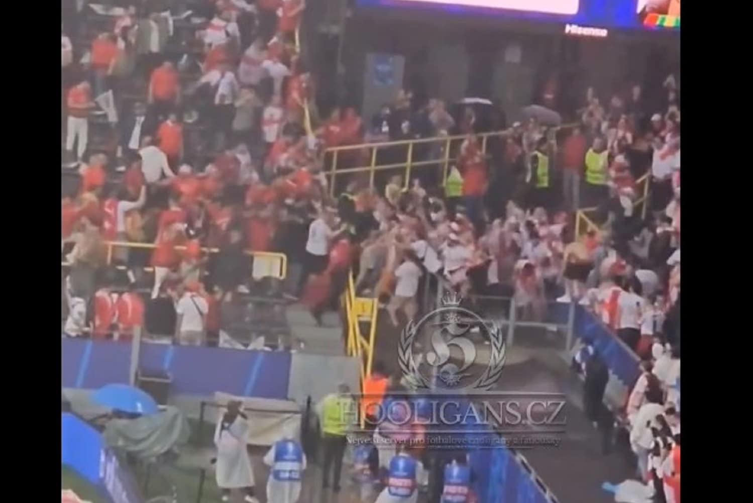 Όπως φαίνεται από βίντεο που κάνουν τον γύρο του διαδικτύου, οπαδοί των δύο χωρών συναντήθηκαν σε μία γωνία του γηπέδου και ενεπλάκησαν σε άγρια επεισόδια με… μάχες σώμα με σώμα και μπόλικο ξύλο, ενώ υπήρξε και ρίψη αντικειμένων από τη μία πλευρά στην άλλη.