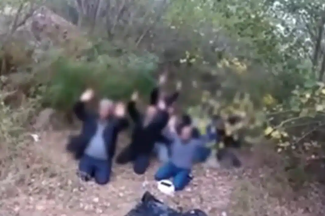 Σε βίντεο-ντοκουμέντο από τη στιγμή της σύλληψής τους που προβλήθηκε στο κεντρικό δελτίο ειδήσεων του ΣΚΑΙ, απεικονίζονται οι 13 Τούρκοι με τα όπλα να γονατίζουν ενώ οι συνοριοφύλακες τους λένε «ψηλά τα χέρια» και «στα γόνατα».