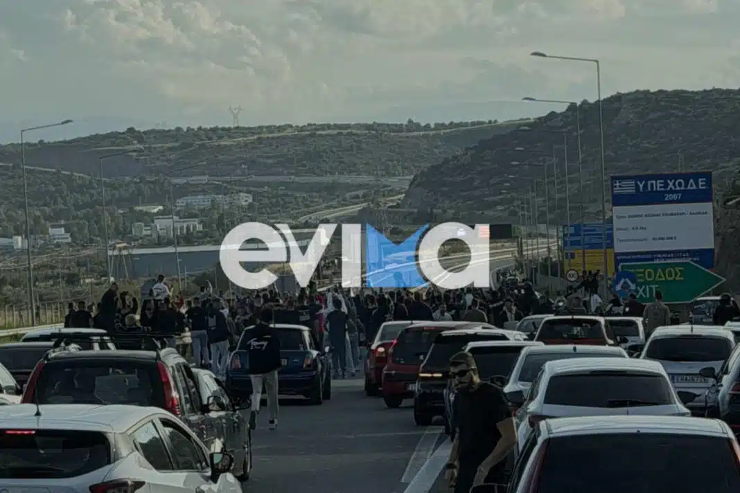 O δρόμος έκλεισε για λίγη ώρα καθώς ήταν συγκεντρωμένα περίπου 200 άτομα με αυτοκίνητα και ο λόγος ήταν για να κάνουν κόντρες, όπως κατήγγειλε οδηγός στο evima.gr.