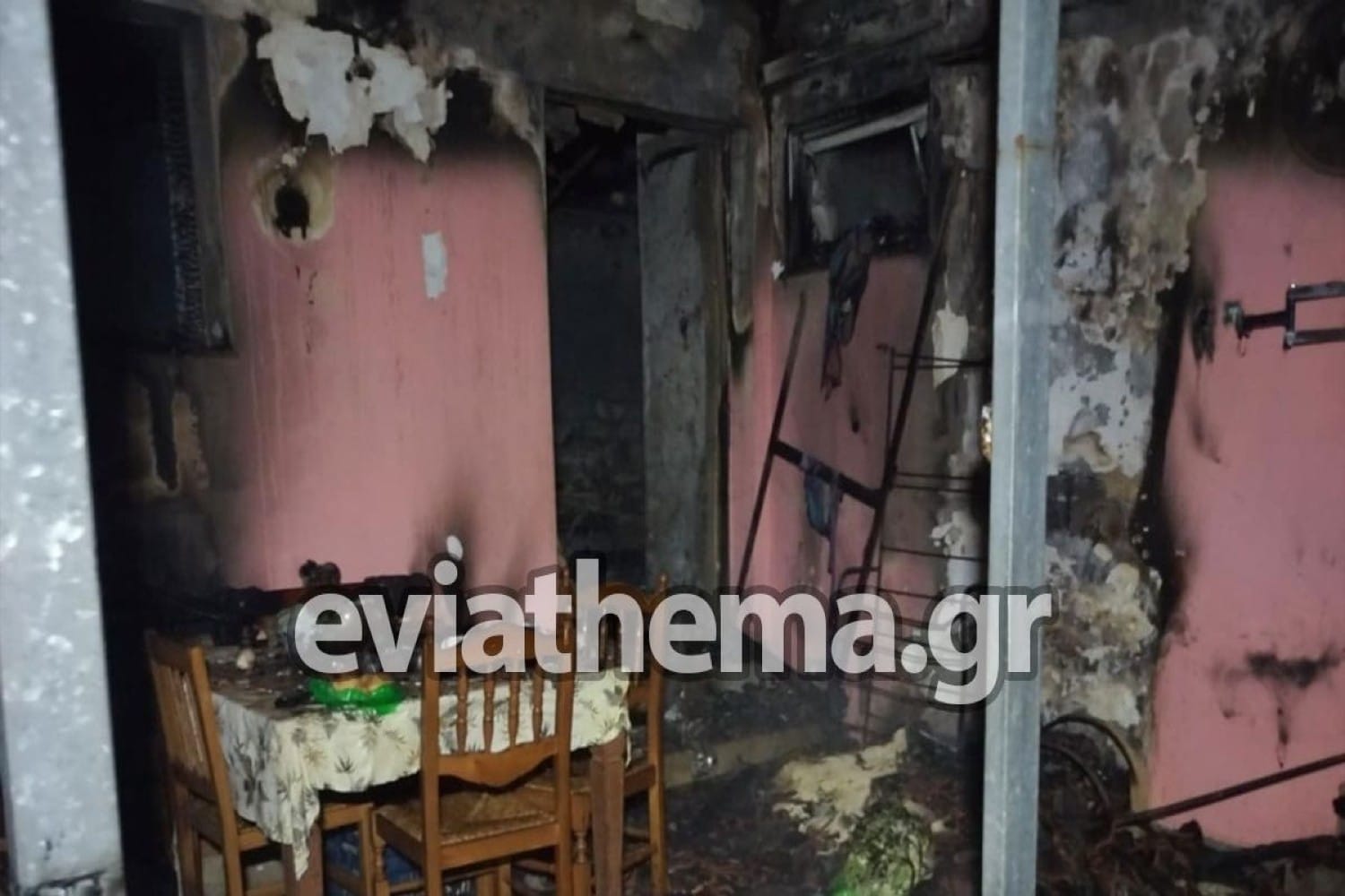 Όπως αναφέρει το eviathema.gr, η πυρκαγιά εκδηλώθηκε υπό αδιευκρίνιστες συνθήκες, κατακαίοντας γρήγορα τους εσωτερικούς χώρους και τη σκεπή του σπιτιού.