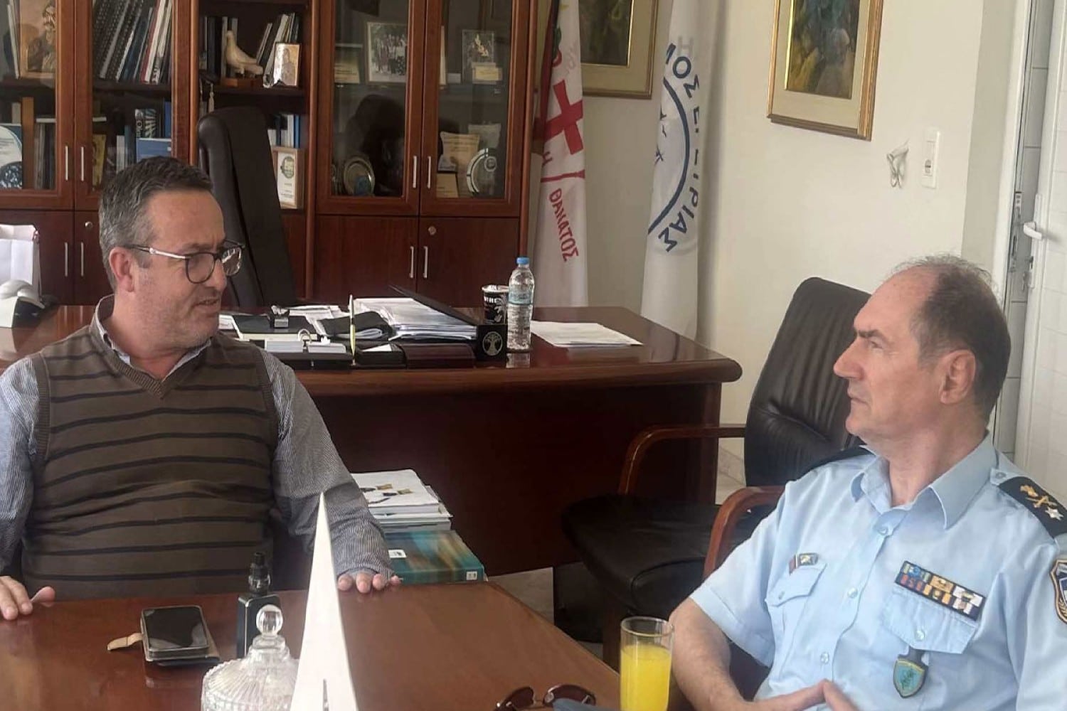 Με θερμό κλίμα υποδοχής και αμοιβαίας εκτίμησης πραγματοποιήθηκε την Τετάρτη (7/5) στο Δημαρχείο Ερέτριας η συνάντηση του Δημάρχου Νίκου Γουρνή με τον Αστυνομικό Διευθυντή Εύβοιας Κωνσταντίνο Πελεκάνο.