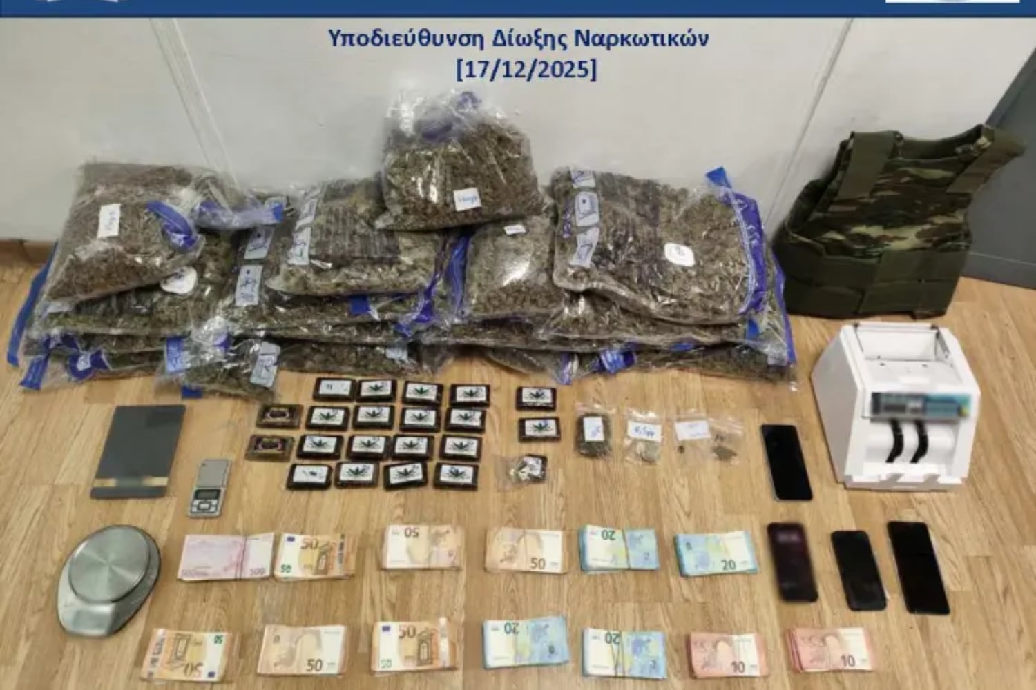 Για την υπόθεση συνελήφθησαν, απογευματινές και βραδινές ώρες της Τρίτης 16 Δεκεμβρίου 2025, σε διάφορες περιοχές της Αθήνας, από αστυνομικούς της Υποδιεύθυνσης Δίωξης Ναρκωτικών, τέσσερα μέλη της οργάνωσης (δύο αλλοδαποί ηλικίας 55 και 30 ετών και δύο ημεδαποί ηλικίας 22 και 30 ετών), οι οποίοι κατελήφθησαν να κατέχουν προς διακίνηση ποσότητες ναρκωτικών ουσιών.