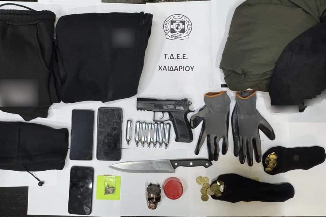 Ενδεικτικό της θρασύτητας της δράσης τους αποτελεί το γεγονός ότι είχαν αποκρύψει αεροβόλο πιστόλι, μαχαίρι και γάντια που είχαν χρησιμοποιήσει στις εγκληματικές τους πράξεις σε θαμνώδες σημείο στον προαύλιο χώρο σχολικού κτιρίου στο Χαϊδάρι.