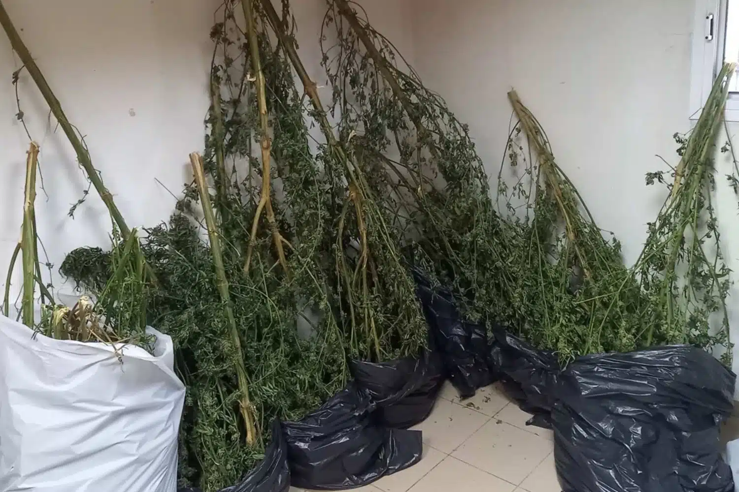 Επιπλέον, στον προαναφερόμενο χώρο βρέθηκαν και κατασχέθηκαν 14 κλώνοι κάνναβης, ύψους από 0,6 έως 2 μέτρα περίπου και φύλλα κάνναβης, καθαρού βάρους 4 κιλών και 904 γραμμαρίων, τα οποία προέρχονται από τα ανωτέρω δενδρύλλια κάνναβης.