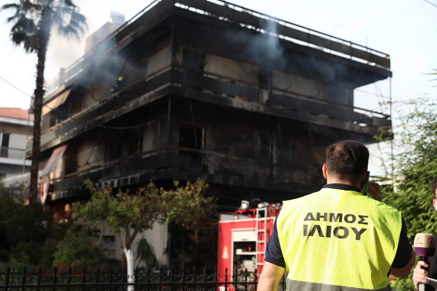 Στο σημείο επιχείρησαν 32 πυροσβέστες με 13 οχήματα και ειδικό κλιμακοφόρο όχημα.