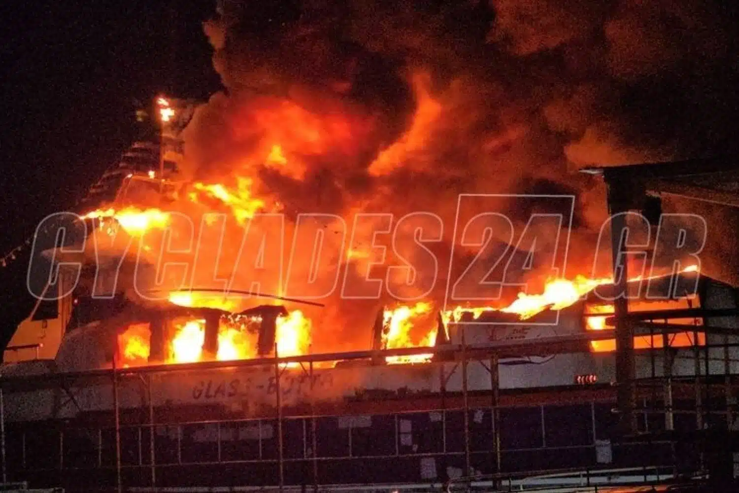 Φωτιά στο λιμάνι της Σύρου – Κάηκαν τρία σκάφη (βίντεο)