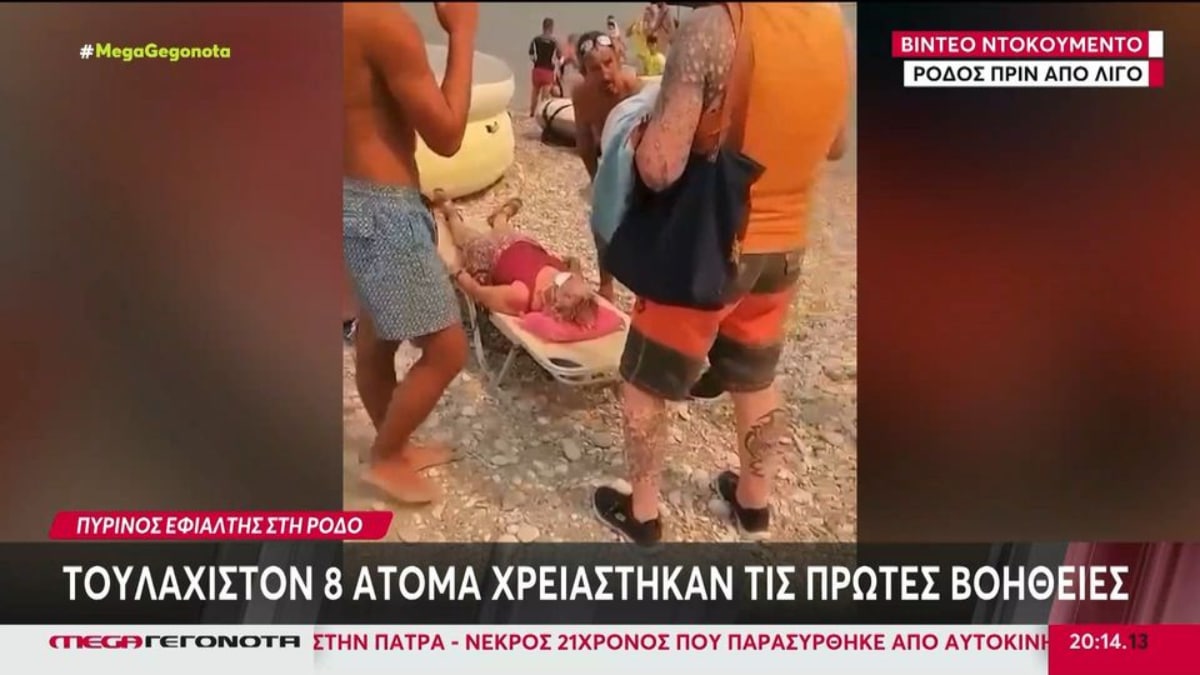 Ένα συγκλονιστικό βίντεο από την παροχή πρώτων βοηθειών σε γυναίκα με αναπνευστικά προβλήματα λόγω της φωτιάς στη Ρόδο έφερε το Mega.