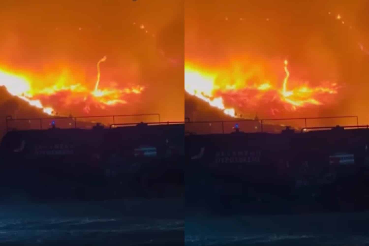 Συγκλονίζουν τα βίντεο που έρχονται στο φως της δημοσιότητας και δείχνουν την προέλαση του πύρινου μετώπου μεταξύ άλλων και στην περιοχή του Διονύσου. Είναι χαρακτηριστικό το βίντεο με τον πύρινο ανεμοστρόβιλο που σχηματίστηκε στο γήπεδο της περιοχής.
