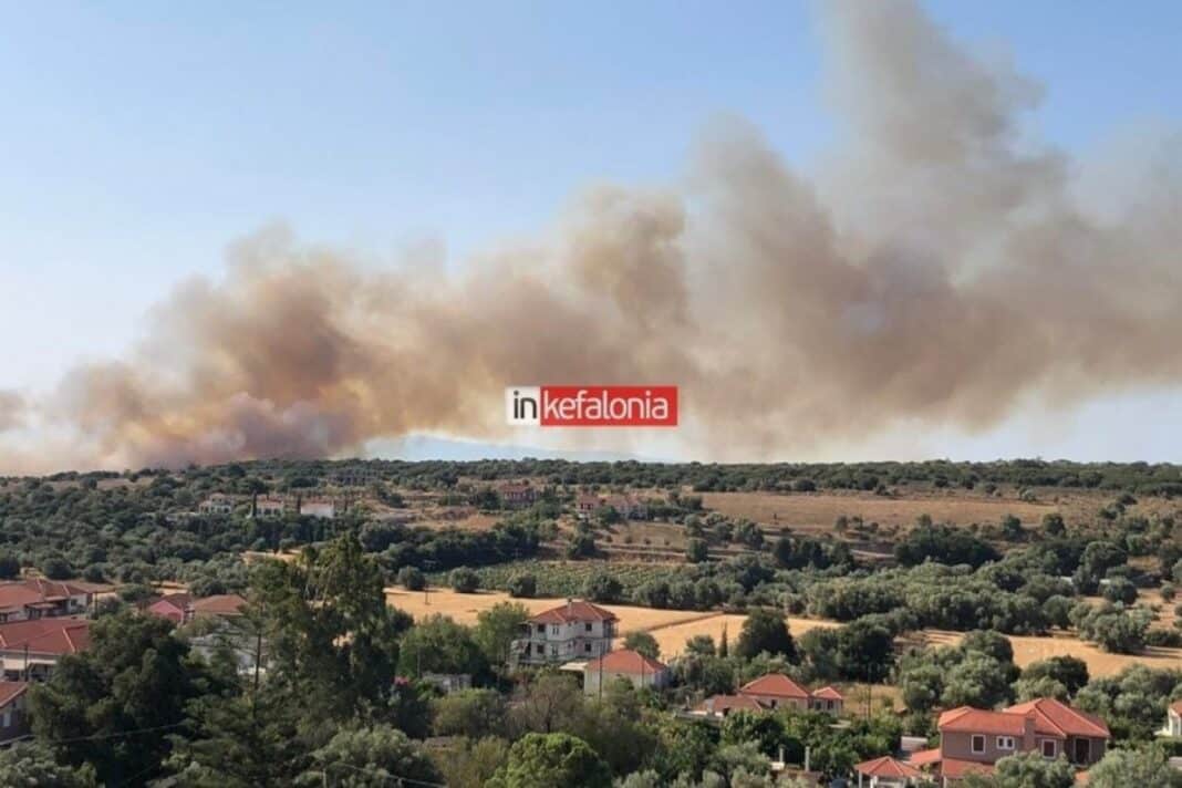Μεγάλη φωτιά ξέσπασε το πρωί της Παρασκευής (8/8) στην Κεφαλονιά και συγκεκριμένα στην περιοχή Καραβάδος.