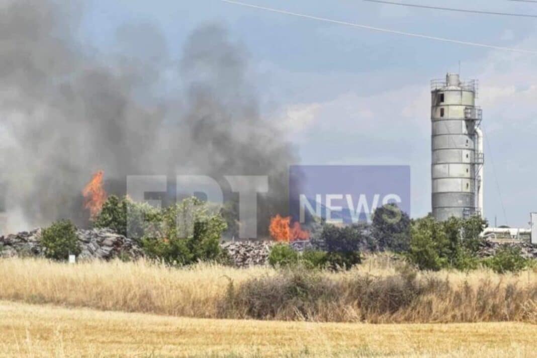 Φωτιά ξέσπασε το μεσημέρι της Τρίτης (1/7) σε αύλειο χώρο εργοστασίου επεξεργασίας ξυλείας που βρίσκεται σε κοντινή απόσταση με το Νέο Σούλι του Δήμου Εμμανουήλ Παππά Σερρών.