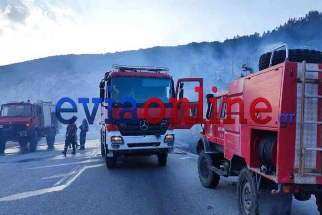 Όπως αναφέρει το eviaonline.gr, η πυρκαγιά έχει εκδηλωθεί κοντά στο χωριό Βατήσι του δήμου Καρύστου στην Εύβοια.