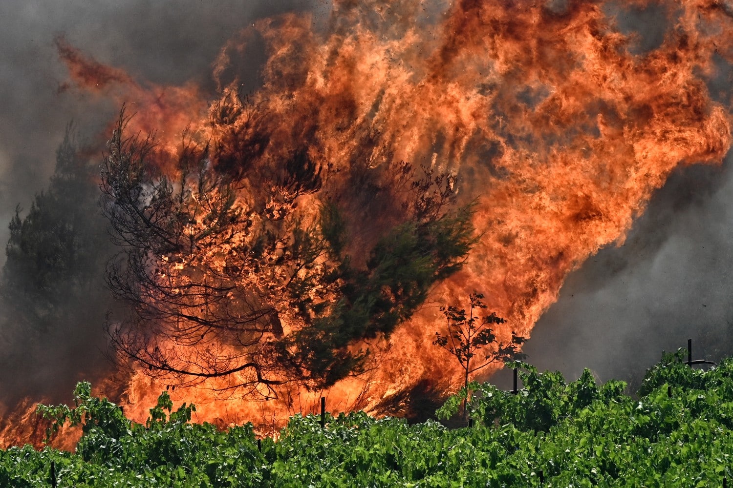 Σύμφωνα με την Πυροσβεστική η φωτιά καίει σε αγροτοδασική περιοχή.