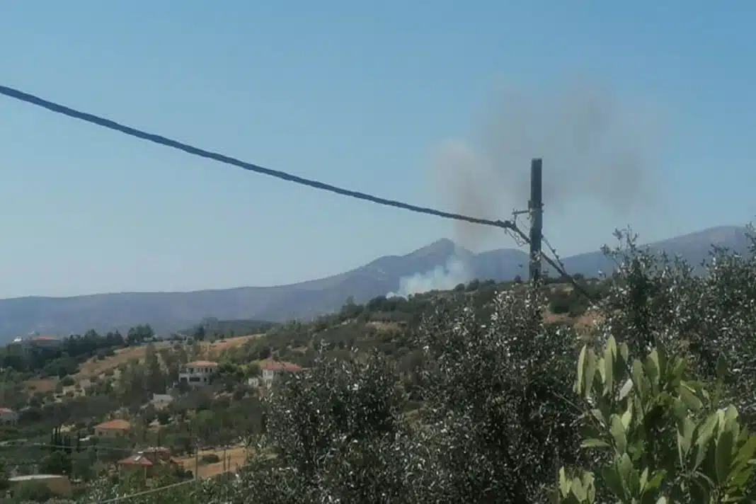 Στην περιοχή επιχειρούν 25 πυροσβέστες με 11 οχήματα, 2 αεροσκάφη και 1 ελικόπτερο.