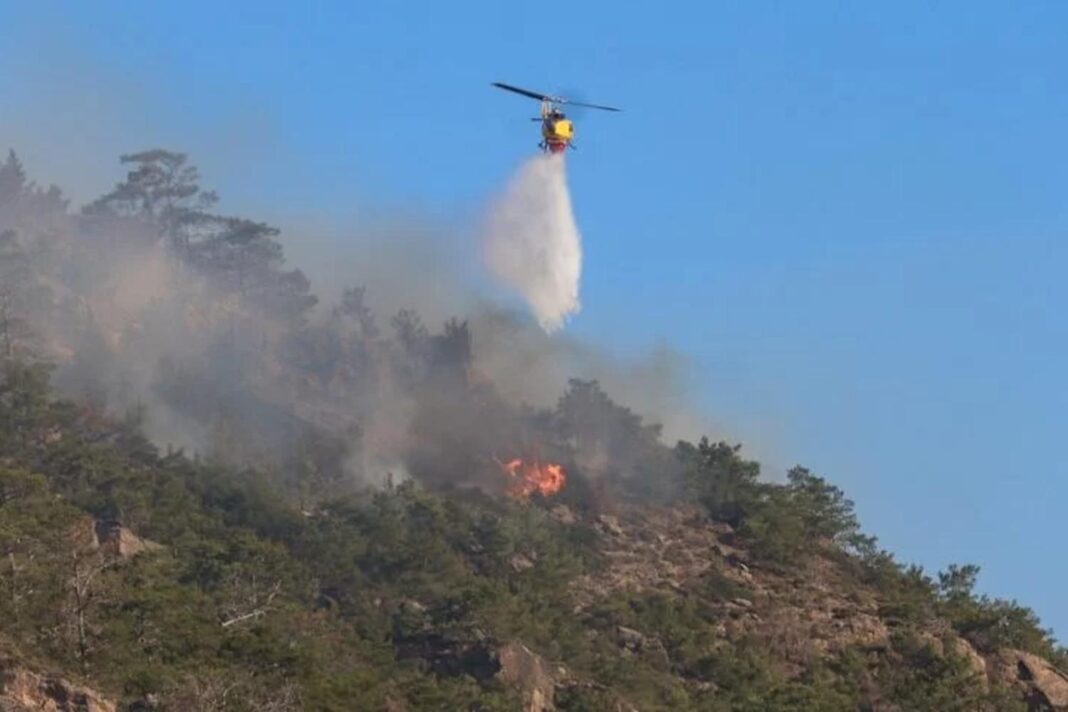 Επιχειρούν 115 πυροσβέστες με 3 ομάδες πεζοπόρων της 9ης ΕΜΟΔΕ, 38 οχήματα και ομάδα Σ.μη.Ε.Α., 2 αεροσκάφη και 8 ελικόπτερα,εκ των οποίων το ένα για τον συντονισμό της κατάσβεσης της φωτιάς. Επίσης στο έργο συνδράμουν και υδροφόρες των ΟΤΑ