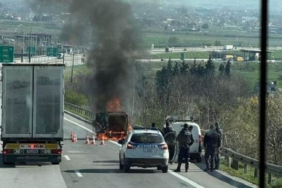 Φωτιά εκδηλώθηκε σε Ι.Χ. επιβατικό όχημα στο 365ο χλμ. της Ε.Ο. Αθηνών – Θεσσαλονίκης.