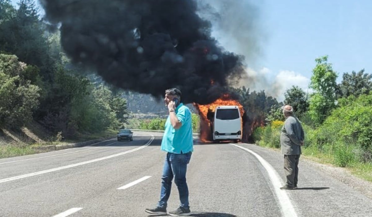 Το λεωφορείο μέσα σε λίγα λεπτά τυλίχτηκε στις φλόγες.