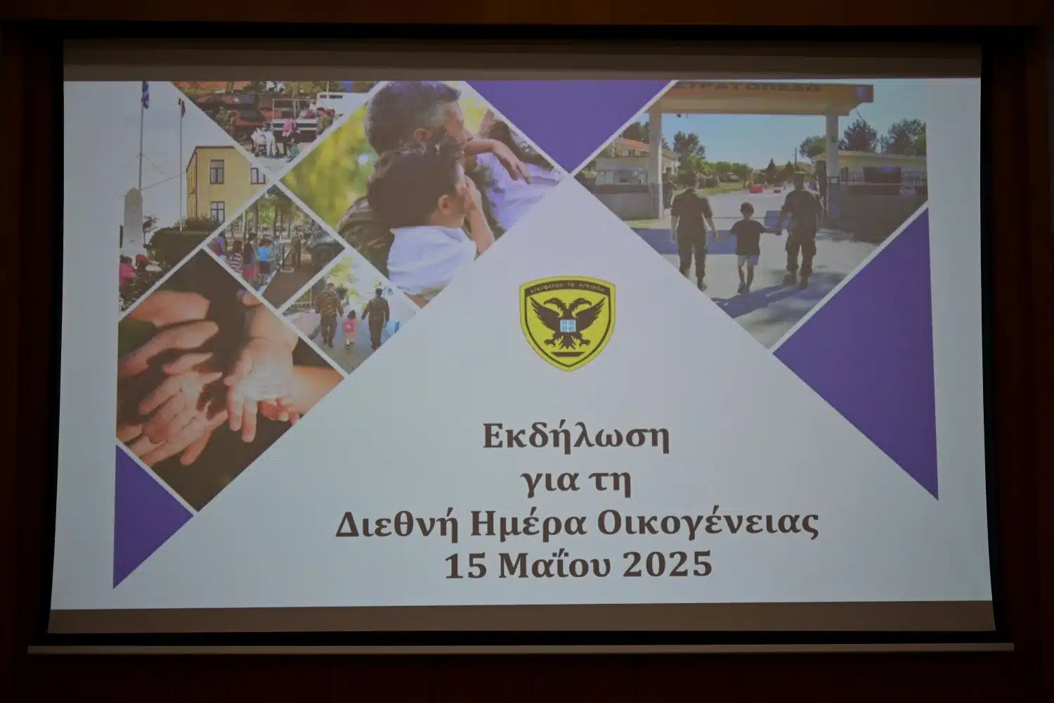 Εκδήλωση με αφορμή την Διεθνή Ημέρα Οικογένειας και στο πλαίσιο της ανακήρυξης του έτους 2025 από το Γενικό Επιτελείο Στρατού (ΓΕΣ) ως «Έτος αφιερωμένο στην αναγνώριση του ρόλου και στην απόδοση τιμής, στις οικογένειες του στρατιωτικού προσωπικού» πραγματοποιήθηκε, σήμερα, Πέμπτη (15/5), στην αίθουσα «Επισμηναγός (Ι) Δημήτριος Καμπέρος», στο στρατόπεδο «Στρατάρχη Αλεξάνδρου Παπάγου».