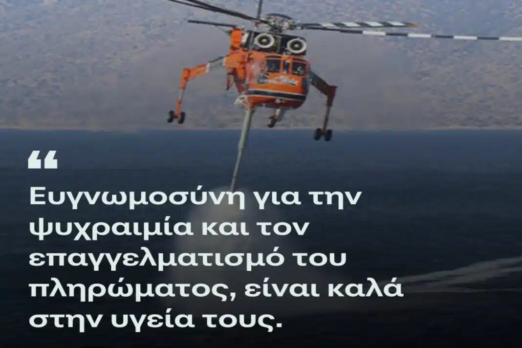 Με ανάρτηση του ο υπουργός Πολιτικής Προστασίας Γιάννης Κεφαλογιάννης αναφέρθηκε στην προσθαλάσσωση του ελικοπτέρου Erickson αλλά και στην κατάσταση της υγείας των τριών μελών του πληρώματος.