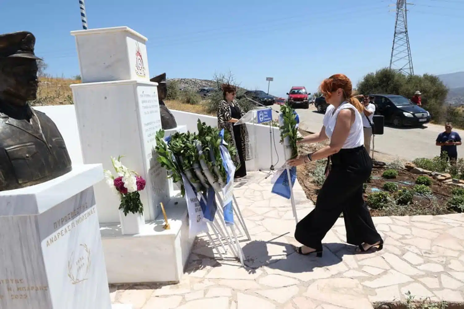 Ακολούθησε τελετή αποκαλυπτηρίων των προτομών των αδικοχαμένων συναδέλφων παρουσία του Υπουργού Κλιματικής Κρίσης και Πολιτικής Προστασίας Βασίλη Κικίλια και του Διοικητή της Πυροσβεστικής Ακαδημίας Υποστράτηγου Κωνσταντίνου Θεοφιλόπουλου ως εκπροσώπου του Αρχηγού ΠΣ.