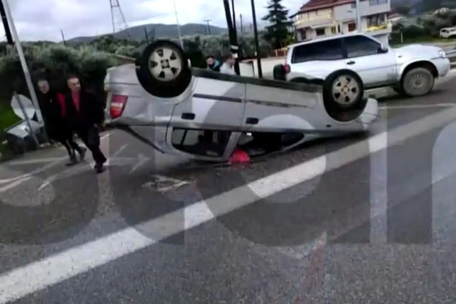 Παρέμεινε εγκλωβισμένη για λίγα λεπτά στο εσωτερικό του αυτοκινήτου, εμφανώς σοκαρισμένη, χωρίς ωστόσο να υποστεί τραυματισμό.