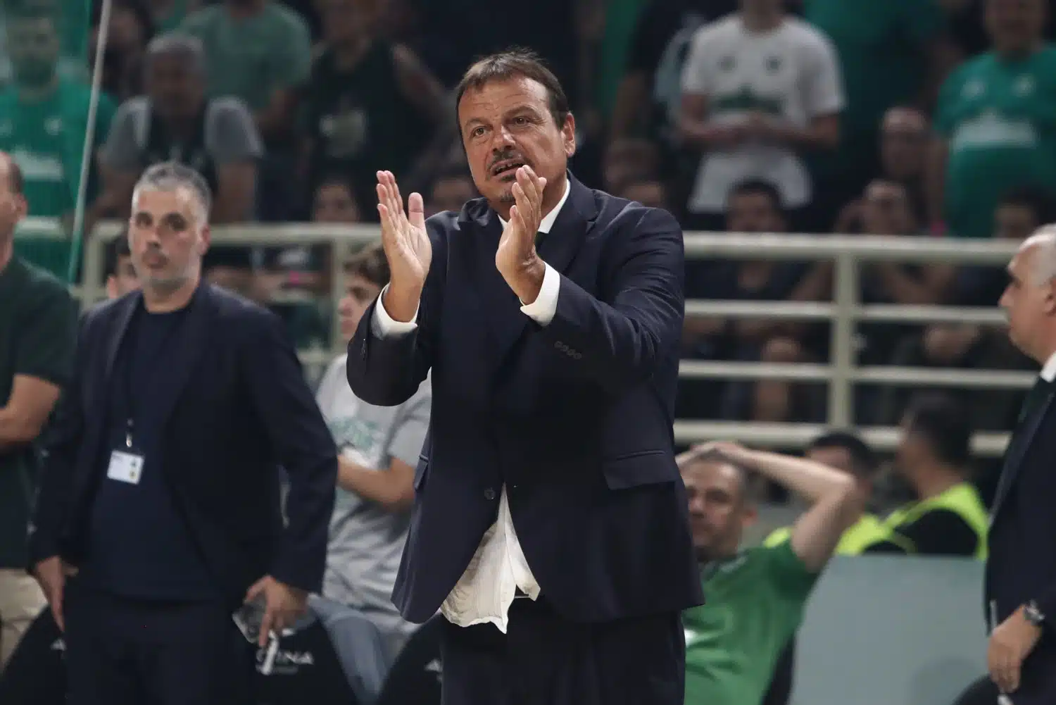 Οι Κυπελλούχοι Ελλάδας υπογραμμίζουν πως ο τεχνικός των πρωταθλητών Ευρώπης δυσφήμησε το άθλημα, επικαλούμενοι την τοποθέτησή του σχετικά με τους ξένους διαιτητές. Παράλληλα, στέκονται στο γεγονός ότι χειροκρότησε ειρωνικά του ρέφερι τους πρώτους τελικούς και τονίζουν πως με αυτή την κίνηση έδωσε το… έναυσμα στην εξέδρα για να συνεχίσει.