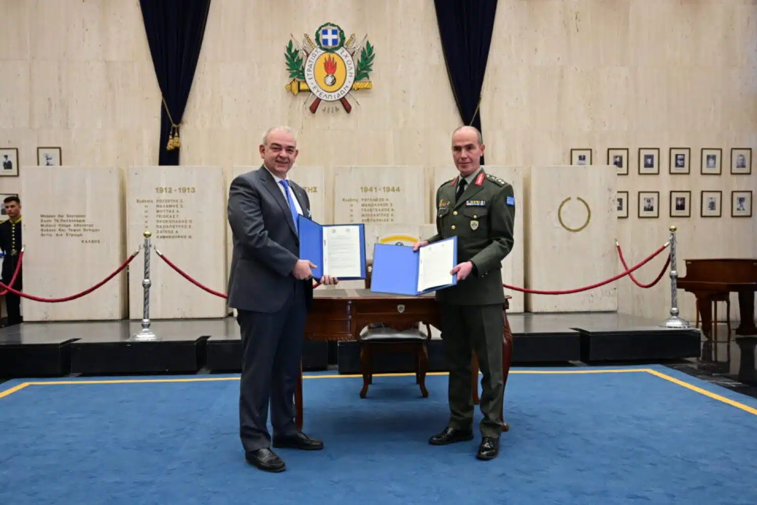 Την Πέμπτη (13/2) στη Στρατιωτική Σχολή Ευελπίδων, στη Βάρη, ο διοικητής της Υποστράτηγος Αναστάσιος Πολύχρονος και ο Πρύτανης του Εθνικού Μετσόβιου Πολυτεχνείου, Καθηγητής κ. Ιωάννης Χατζηγεωργίου, συνυπέγραψαν Μνημόνιο Συνεργασίας μεταξύ της Στρατιωτικής Σχολής Ευελπίδων και του Εθνικού Μετσόβιου Πολυτεχνείου.