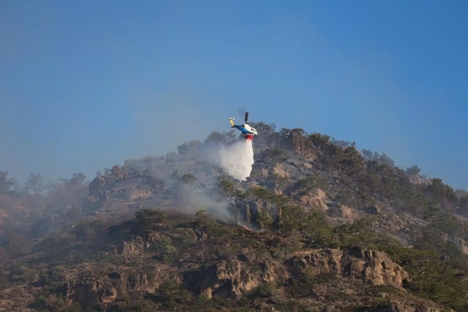 Περισσότεροι από 300 πυροσβέστες επιχειρούν νυχθημερόν, με τη συνδρομή εναέριων μέσων που πραγματοποιούν συνεχείς ρίψεις νερού. Στο πλευρό τους βρίσκονται εθελοντές και κάτοικοι που προσπαθούν να προστατεύσουν περιουσίες και καλλιέργειες.