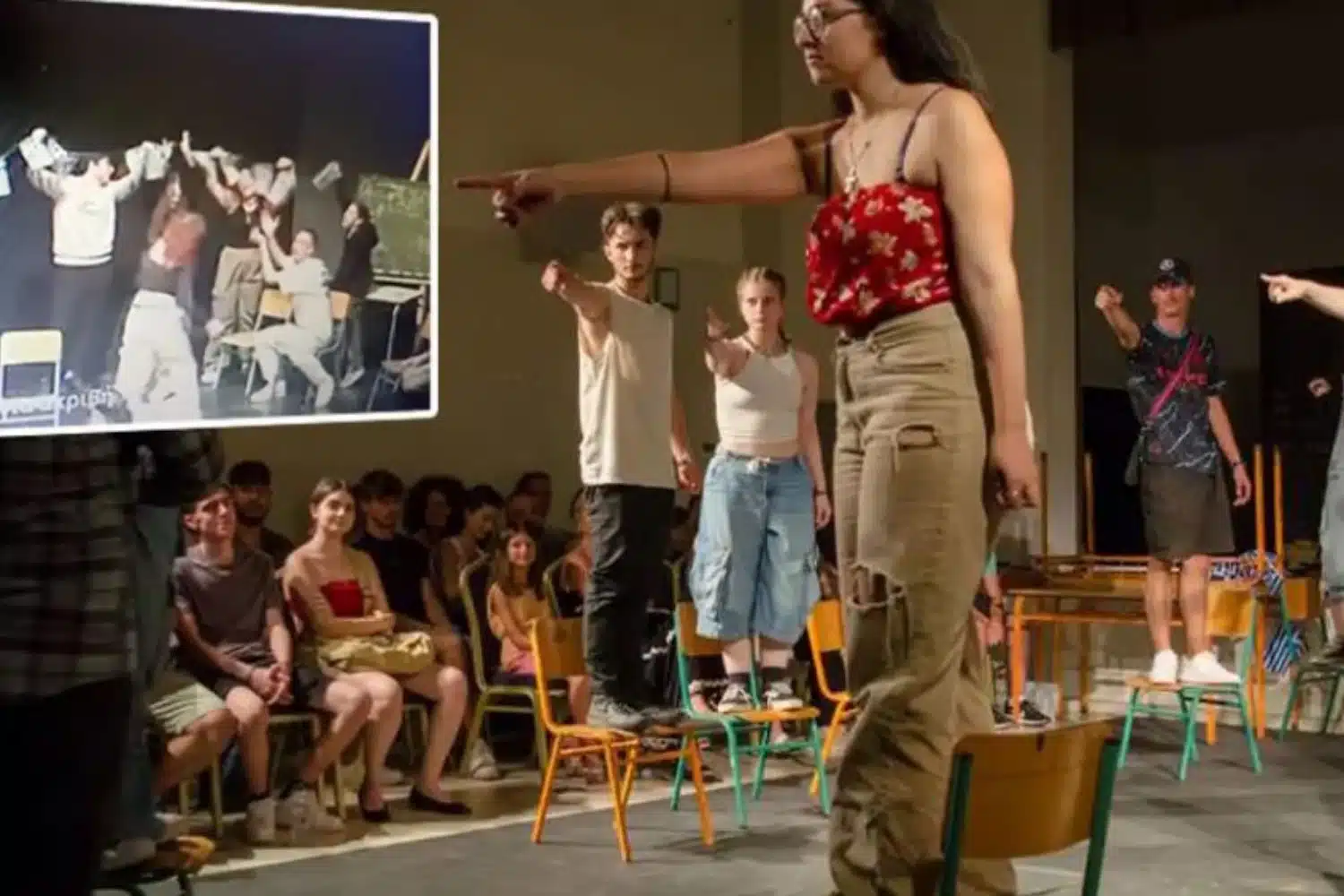 Ο λόγος που έγινε η ανώνυμη καταγγελία και συνεπώς έφτασε για έλεγχο η αστυνομία στην θεατρική αίθουσα της Ιεράπετρας, σύμφωνα με πληροφορίες φαίνεται πως ήταν η σκηνή της θεατρικής παράστασης κατά την οποία υπάρχει ένας έντονος διάλογος σε μία σχολική αίθουσα, η οποία οδηγεί μία μαθήτρια να πετά στο πάτωμα μία γιρλάντα με ελληνικές σημαίες, αναφέρει το radiolasithi.gr.