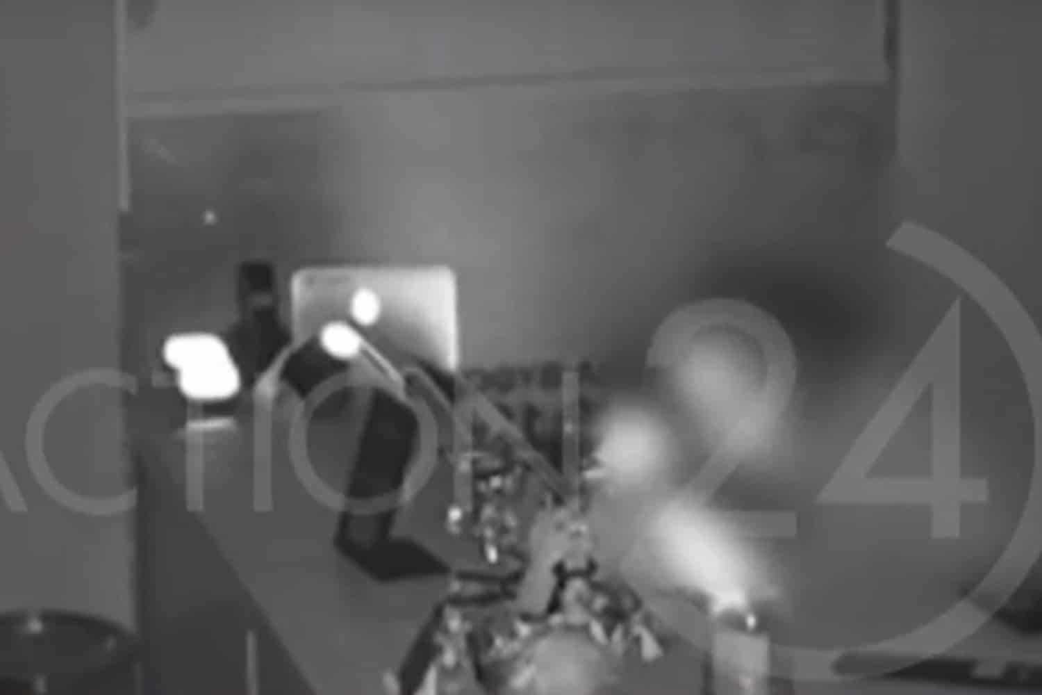 Στο βίντεο φαίνεται ο ένας από τους διαρρήκτες να κρατάει έναν φακό και με το φως του να προσπαθεί να βρει τα χρήματα από το ταμείο της επιχείρησης.