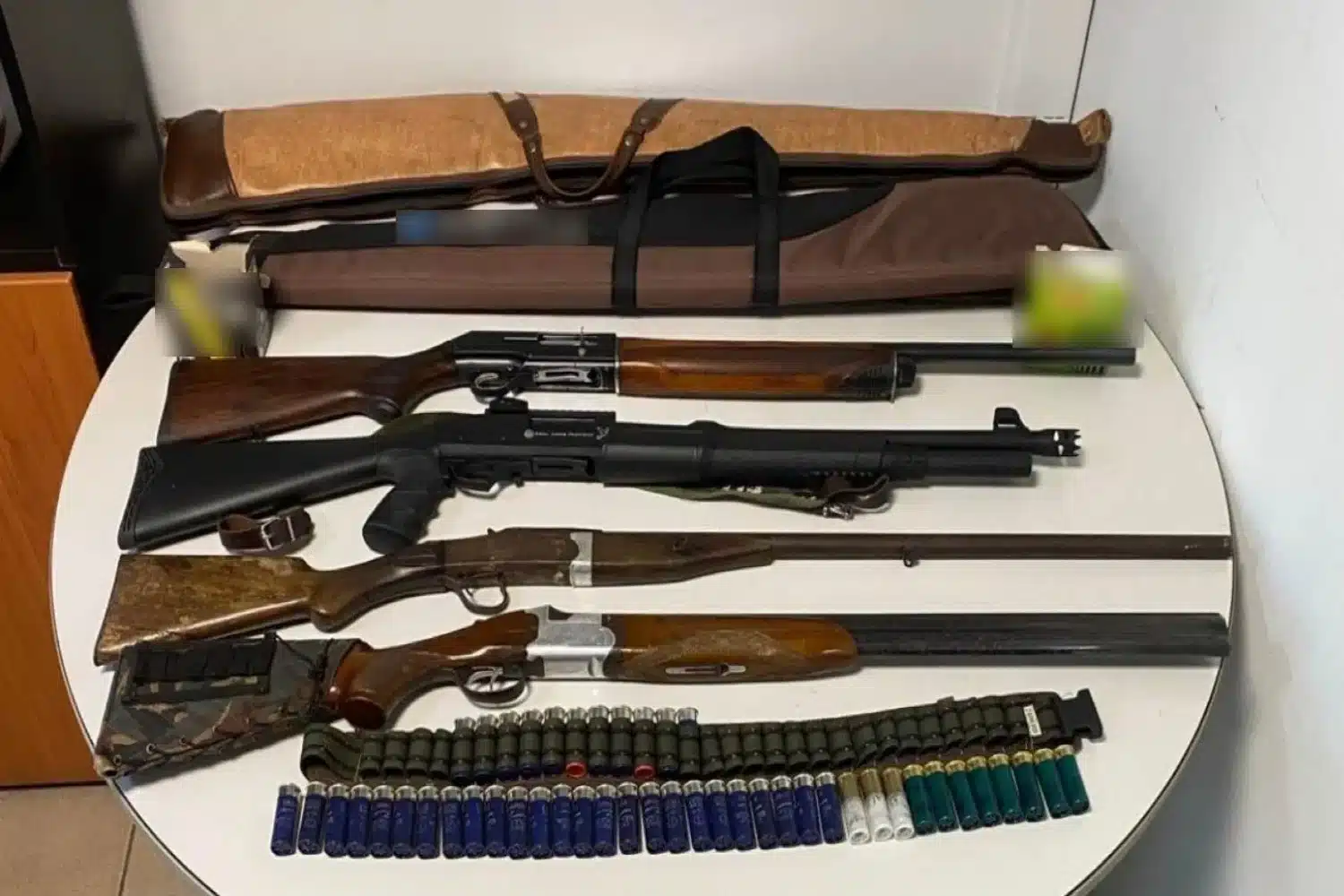 Από την έρευνα που πραγματοποιήθηκε στην οικία ενός εκ των συλληφθέντων βρέθηκαν και κατασχέθηκαν 4 όπλα (ημιαυτόματη καραμπίνα, επαναληπτική καραμπίνα και δύο κυνηγετικά), 33 φυσίγγια, καθώς και σύστημα βιντεοσκόπησης, αποτελούμενο από τέσσερις κάμερες, τροφοδοτικό και καταγραφικό.